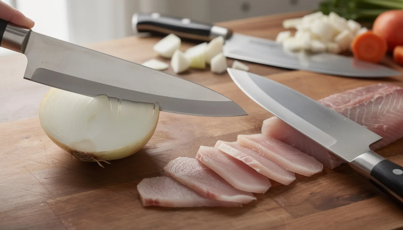 A japanese knife often leans on thinner geometry and a more refined edge profile than a typical chef's knife built for rough, all-purpose abuse. That’s why a 240 mm gyuto can glide through onions with less cracking and why a 270 mm yanagiba can leave cleaner fish surfaces. The tradeoff is simple: thin edges cut effortlessly, but they punish bad technique.